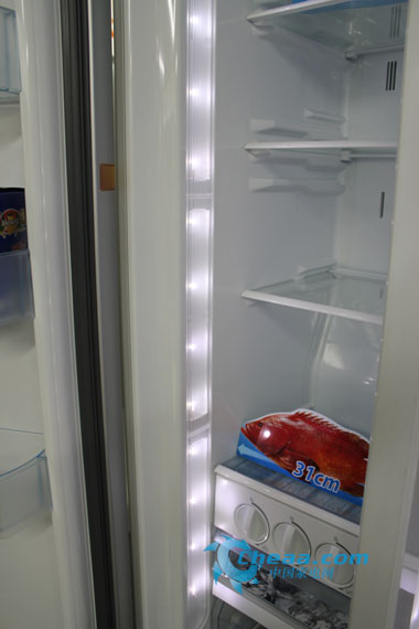 打开冰箱门,3组1.2米长的白色LED灯逐渐点亮,恍然有了置身于舞台的品质感,冰箱内部视觉通透,一目了然。箱门长时间打开情况下,LED灯将闪烁提示关门,细腻处更显人性化设计。561L大容量对开门冰箱,满足日常收纳所需。