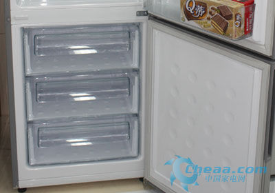 在冷冻室方面,三星BCD-285WNMVS冰箱拥有85升的容积,拥有三层抽屉设计,有利于不同食品的分类保存,而且每个抽屉内部均有防滑圆点,再次体现了人性化设计。
