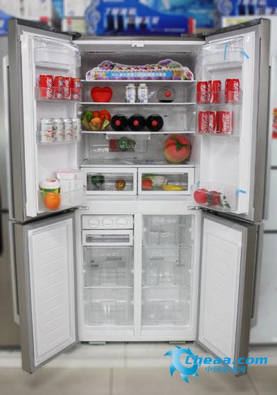 【中国家电网原创】提起多门冰箱,往往是采用上面冷藏室对开门,下面冷冻室多抽屉式设计模式,而美菱推出的一款多门冰箱打破了这个模式,采用冷藏室、冷冻室均为对开门设计,下面就和小编一起去看看这款美菱BCD-410WE9CD(参数 图片 论坛)四门冰箱吧。