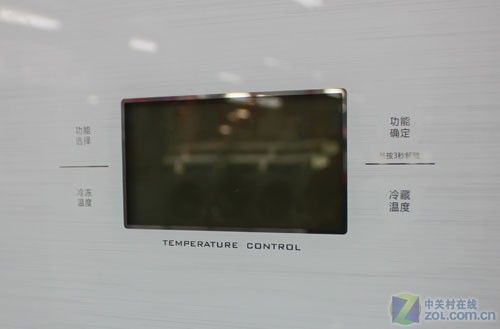 这款冰箱的操作区在左门中部,采用触摸式按键设计,搭配有一款5吋的超大高清LCD液晶显示屏,操作轻松简便,用户对冰箱的运行情况也一目了然。