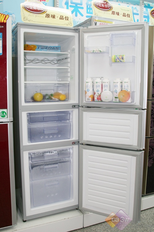 冰箱带有制冷装置的储藏箱。用于冷冻、冷藏食品或其他物品。家用电冰箱的容积通常为20~500升。 额定耗电量冰箱说明书中所标的额定耗电量是按国家标准,在环温25℃,冷藏室温度控制在5℃,冷冻室温度控制在-18℃情况下,不开门,稳定运行24小时所测的数值。 直冷式 可以看到冷冻室抽屉之间有一排排的制冷管路,无抽屉的冰箱这些管路在冷冻室内胆外层。直冷式是最早期的制冷技术,优点是结构简单,成本低,食物不易风干的保鲜效果好些,缺点是箱内温度不太均匀。 风冷式制冷管路隐藏,利用风扇将冷风吹进冷冻室和冷藏室,优点是箱内温度均匀,制冷效率高(类似给热水吹气冷却快的道理),但结构复杂,成本较高。较高档的冰箱采取风冷的技术较多,象对开门的400升以上大冰箱普遍采用。 间、直冷混合式利用直冷式与风冷式的优点,冷冻室用风冷,冷藏室用直冷。这种方式技术复杂,较少见。 BCDB是电冰箱的代号,C表示冷藏箱,CD表示冷藏冷冻箱,D表示冷冻箱,BCD就是冷藏冷冻电冰箱。 变频冰箱变频冰箱采用变频压缩机,并在冰箱控制系统中增加了变频控制器,通过改变压缩机的转速可以改变冰箱的制冷量。由于变频压缩机和变频控制器的成本较高,使得变频冰箱的价格也较高,现在一般用在高档冰箱产品中。 冰箱压缩机冰箱制冷系统中的动力机械,它将冰箱的制冷剂压缩成高压气体,在整个制冷系统中运行,完成制冷任务。