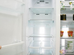 冰箱带有制冷装置的储藏箱。用于冷冻、冷藏食品或其他物品。家用电冰箱的容积通常为20~500升。 额定耗电量冰箱说明书中所标的额定耗电量是按国家标准,在环温25℃,冷藏室温度控制在5℃,冷冻室温度控制在-18℃情况下,不开门,稳定运行24小时所测的数值。 直冷式 可以看到冷冻室抽屉之间有一排排的制冷管路,无抽屉的冰箱这些管路在冷冻室内胆外层。直冷式是最早期的制冷技术,优点是结构简单,成本低,食物不易风干的保鲜效果好些,缺点是箱内温度不太均匀。 风冷式制冷管路隐藏,利用风扇将冷风吹进冷冻室和冷藏室,优点是箱内温度均匀,制冷效率高(类似给热水吹气冷却快的道理),但结构复杂,成本较高。较高档的冰箱采取风冷的技术较多,象对开门的400升以上大冰箱普遍采用。 间、直冷混合式利用直冷式与风冷式的优点,冷冻室用风冷,冷藏室用直冷。这种方式技术复杂,较少见。 BCDB是电冰箱的代号,C表示冷藏箱,CD表示冷藏冷冻箱,D表示冷冻箱,BCD就是冷藏冷冻电冰箱。 变频冰箱变频冰箱采用变频压缩机,并在冰箱控制系统中增加了变频控制器,通过改变压缩机的转速可以改变冰箱的制冷量。由于变频压缩机和变频控制器的成本较高,使得变频冰箱的价格也较高,现在一般用在高档冰箱产品中。 冰箱压缩机冰箱制冷系统中的动力机械,它将冰箱的制冷剂压缩成高压气体,在整个制冷系统中运行,完成制冷任务。