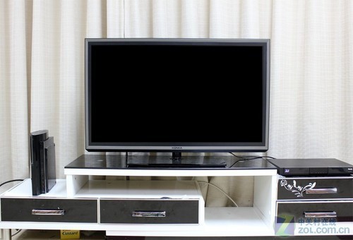 康佳LED42IS988PD智能3D电视外观设计方正,纯黑色面板搭配银色边框,透出金属质感,这种边框的好处是不会留下手印,擦拭比较容易,宽大的底座让电视看上去更加稳定。