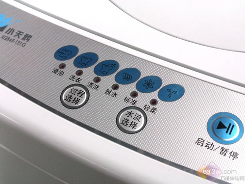 在洗涤程序方面,小天鹅XQB45-131G只配备了一种洗涤程序,但是通过控制水流的方式来解决不同衣物的洗涤问题。另外,除了指示灯之外,按钮处还配有简笔画显示,可以轻松搞定洗涤。