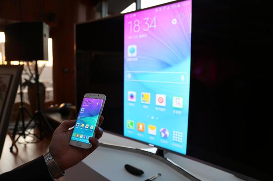 此外SUHD电视还可与Galaxy Note 4、S6等机型双向互动,可以在手机上显示电视屏幕用手机充当电视的遥控器,也可以将手机屏幕内容投影到电视上。只要手机与电视在同一个局域网,下手机屏幕点进快捷方式即可完成连接,非常简单。