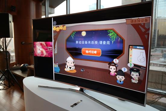 目前SUHD电视上已经上线了多款游戏,其中还包括可以和手机联动的游戏。例如“你画我猜”,在手机上画出图片并显示在电视上让朋友猜;“赛跑”通过手机充当体感控制仪,努力晃动手机让游戏中的角色向重点奔跑。