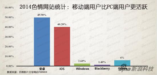 据色情影片分享网站Pornhub对2014年智能手机用户对其访问情况的调查报告显示,移动端正成为用户访问色情网站的主要方式。