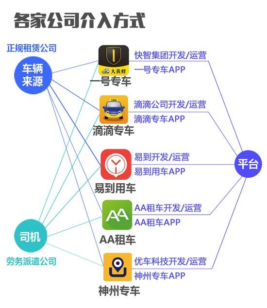 滴滴打车方面也表达了类似的观点,现阶段滴滴不考虑成立租赁公司或者收购租赁公司,目前还是会与汽车租赁公司进行合作租赁车辆,从劳务派遣方聘请司机,并通过滴滴专车软件提供专车服务。