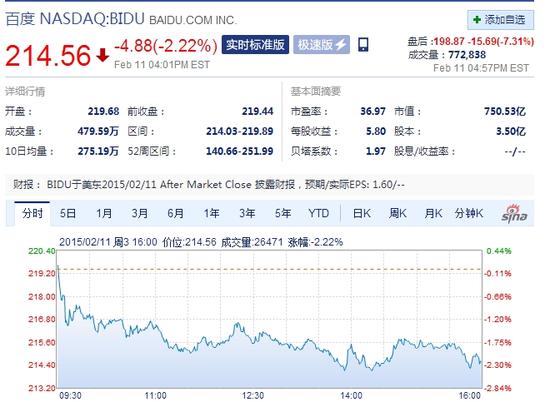 根据雅虎财经汇总的数据,华尔街10位分析师平均预计,按美国通用会计准则(GAAP)计算,百度第四财季每股收益将达人民币9.95元。财报显示,百度第四财季每股收益为人民币9.01元,不及分析师预期。