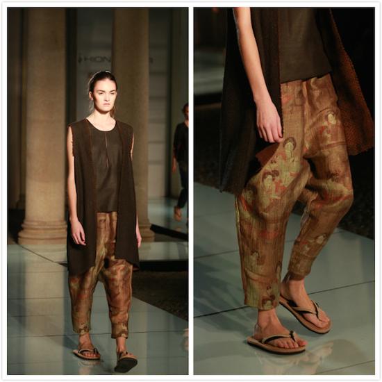 最后出场的是徐晓彦的品牌“大隐”,色调较沉,运用了不少中国人像图案,整体风格更为低调内敛。