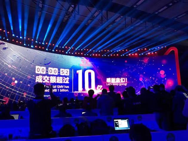 在开始仅仅52秒以后,天猫交易额超过10亿;截至北京时间11月11日零点3分16秒,菜鸟网络包裹超过100万单。