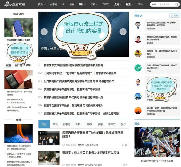新浪科技讯 2017年5月22日,最具影响力的中文科技媒体新浪网科技频道(tech.sina.com.cn)上线2017新版页面。新首页在沿用了卡片式信息流设计的基础上引入用户兴趣推荐机制,将原有的新闻浏览区域重新进行了规划。新版首页将用户“兴趣”作为核心贯穿阅读的始终,并将重要栏目重新整合,继续以全面、详尽的报道提供给用户。