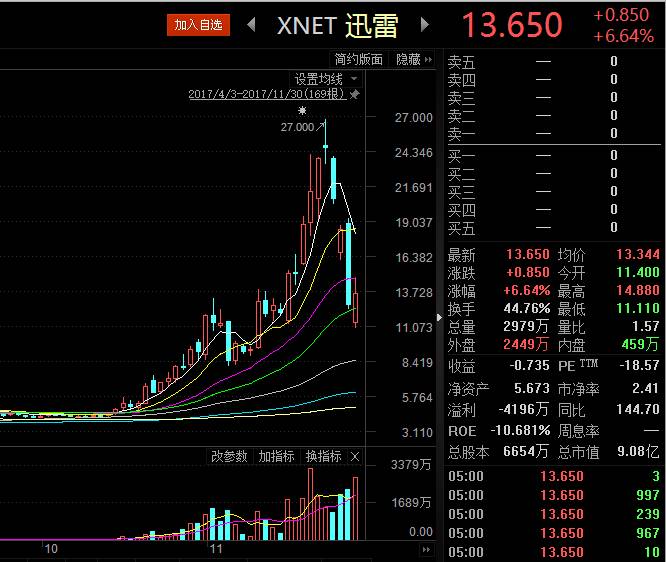 虽然真相仍是一团“迷雾”,但因这起“内讧”,迅雷股价大跳水,11月27日收跌15.66%,28日收跌11.57%,在29日重挫31.11%。
