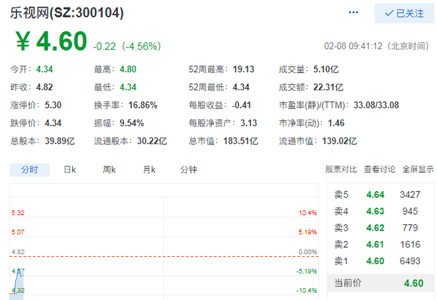 新浪科技讯 2月8日上午消息,乐视网(300104.SZ)今日早盘打开跌停板,此前连续十一个交易日跌停。