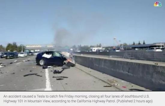 最新消息,美国当地时间周五上午,一辆蓝色的特斯拉X型车在美国101高速路上向南行驶时,撞上中间隔离栅,汽车起火。随后,这辆特斯拉被同一条车道上从后方开过来的马自达相撞,然后再被一辆奥迪撞上。一共3辆车被卷入这起事故。