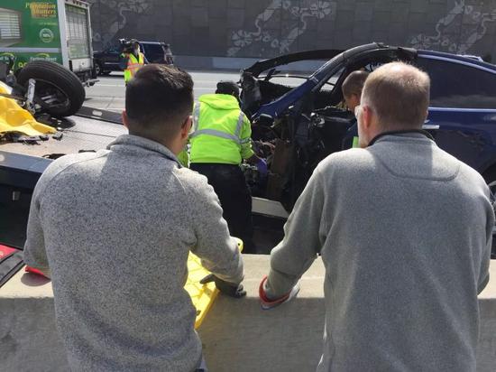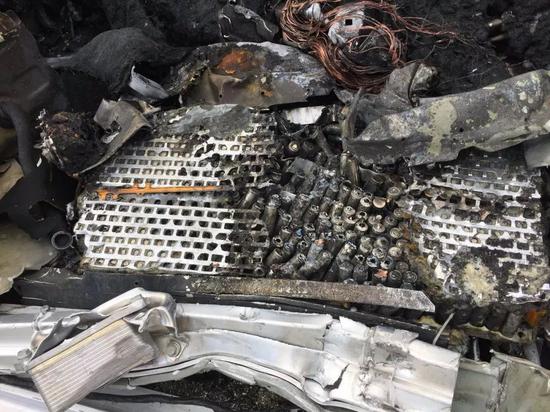 事故发生后,特斯拉工程师协助警方拆除了着火的电池组。