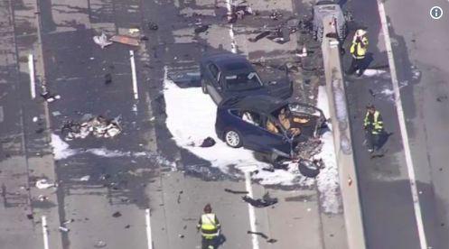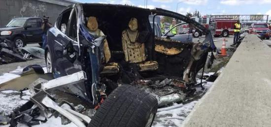 善后工作的图像显示,Model X的前端要么因为撞击过程,要么因为火灾而被完全摧毁。图片来自Twitter上的Dean c 。 Smith拍摄的照片