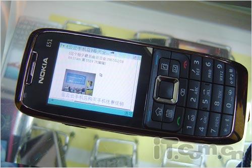 提示:购买水货手机没有质量保障,请谨慎选择! 编辑观点:诺基亚E51(参数 报价 图片 文章 热评)小巧的身材,强大的商务功能和快速运行速度,都很惹人关注。现在E51水货价格1750元,比上月又下调百元,喜欢超薄智能商务手机的用户可以考虑。 ![]() 点击图片查看诺基亚E51详细资料 外观上,诺基亚E51采用直板设计,机身正面灰黑色很有商务风格,金属的外壳使商务中显露出时尚感。E51机身三围为114.8×46×12mm,重量100g,仅12mm的超薄身材成为它最大的一个卖点。E51配备了一个可视面积为2.0英寸的1670万色TFT屏幕,分辨率为主流的QVGA级别,显示效果很细腻。摄像头上,它配置了一个较为普通的200万像素摄像头,支持4倍数码变焦,拍摄效果一般。 ![]() 点击图片查看诺基亚E51详细资料 E51配置了一颗ARM 11主频为369MHz的CPU,系统采用了Symbian OS 9.2,S60 V3.1版智能操作系统,系统具有很多第三方软件支持扩展,增加了此产品的实用性能。机身不错的硬件配置使得系统的运行速度非常的流畅。E51自带存储130MB,还可通过Micro SD存储卡扩展至4GB,足够你的使用。此外,E51还有着优秀的续航能力,拥有1050mAh的电池容量,十分耐用。 ![]() 点击图片查看诺基亚E51详细资料 作为一款商务手机,E51内置了丰富的商务软件,Office、PDF、电子邮件等等,商务功能一应俱全,它还设计了多个快捷键为用户操作带来更大的方便。娱乐功能方面,E51拥有独立的音乐播放器、Realplayer视频播放器、Flash播放器、以及可视收音机的功能搭配上2.5mm的音乐接口,让小巧的E51集商务休闲于一体。 ![]() 点击图片查看诺基亚E51详细资料 E51虽然没有内置GPS芯片,但却内置有导航软件,可以借助蓝牙GPS或基于网络的定位来实现定位导航,增加了不少实用性。E51在性能上和功能上可以说是非常的强劲,机器的运行速度也是非常的快。而且作为一款商务手机,它超薄小巧的设计也是大的卖点。这么强大的功能,现在水货1750元的价钱,还是比较实惠的,喜欢超薄智能商务手机的用户不妨考虑一下。