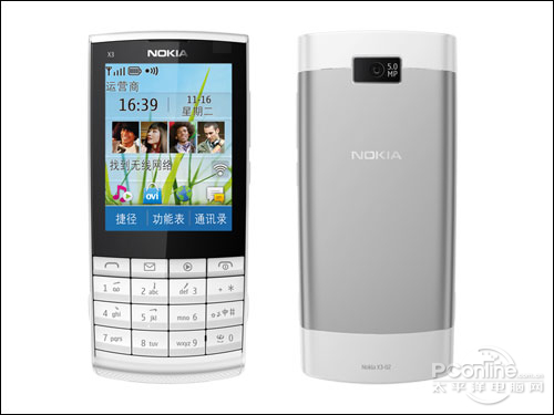 而在硬件配置方面,诺基亚X3-02采用了一块2.4英寸的QVGA触摸屏,一枚500万像素的摄像头保证了不俗的拍照能力。同时在网络方面X3-02还加入了对于WLAN无线局域网、蓝牙、Ovi地图等功能的支持,因此在网络功能方面还是十分强大的。