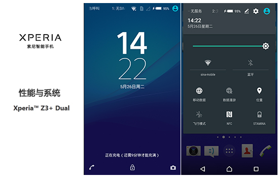 系统方面,应该说得益于Android 5.0的诸多特性,索尼的UI功能得到了补充和增强。譬如在下拉菜单部分,长按按钮可以直接进入菜单,通知栏按键的交互功能也变得更多样,锁屏也更简洁。