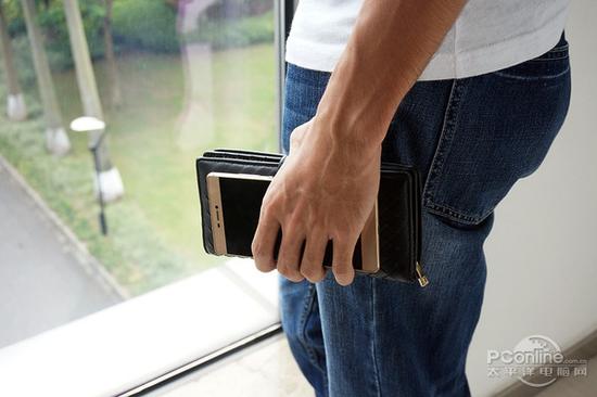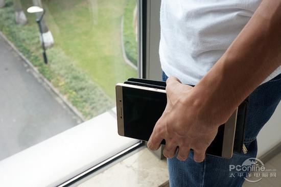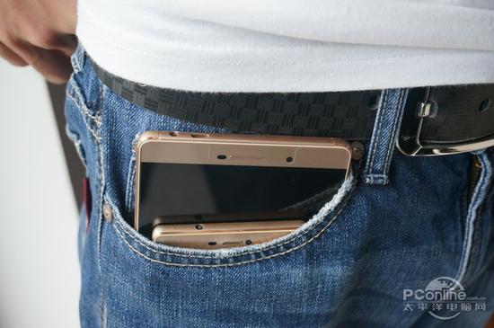 女生手机放包,男生手机放裤袋,应该是常态了吧。小编实测,P8能轻松放入普通牛仔裤的裤袋,而P8max则像巨无霸一样把裤袋塞得满满的,如同暴发户 想要炫耀般还露出了一大截出来。某不愿意透漏姓名的小编算是过了一把暴发户瘾。正所谓古有牙签搅酱缸,今有P8max塞裤袋,会玩。