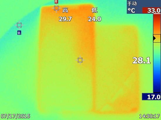 在充电温度测试中,最高温度出现在P8max的充电插口处。温度为29.7°,机身手摸处于温热状态。两者的机身温度相差不大。