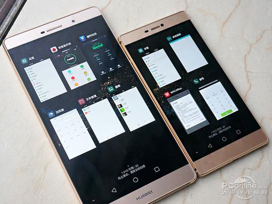 与P8相比P8max的6.8英寸屏幕能显示的内容更多,并不像某些安卓平板一样只是把画面放大。任务管理器的显示从P8的4个缩略图变为6个。