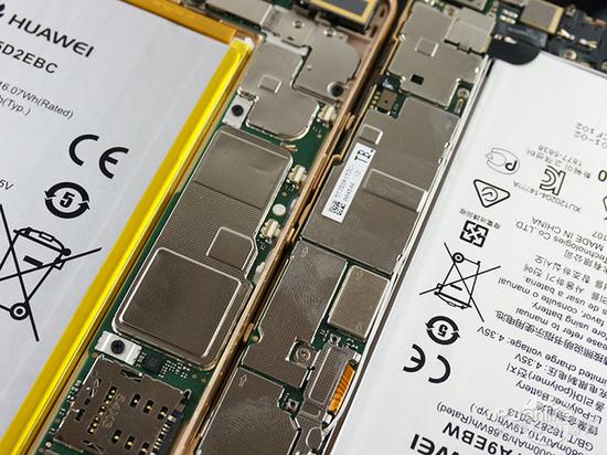 在拆开P8与P8max之后,我们可以看到P8内部的设计更加紧凑,多余的空间很少,而P8max得益于自身超大的体积,内部空间也足够大,使得模块之间的空间更多。