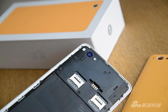 其余细节部分,机身主镜头左侧为椭圆形开孔,不过除令镜头看起来不“突兀”,这一设计并无其他功能安排。机身虽然支持双卡双待,但是仅有主卡支持移动/联通4G,副卡仅支持GSM;也就是说如果您想切换主副卡谁为4G上网,必须拆卸后壳进行换卡操作。