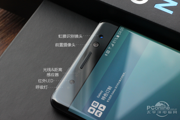 除了3D曲面边框,Galaxy Note7正面面板顶部的设计同样非常巧妙。尽管采用虹膜识别技术后会增加正面面板的开孔,但经过巧妙的处理后,在Galaxy Note7上面只能看到三个明显开孔。