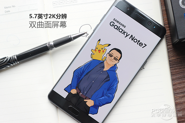 三星Galaxy Note7采用的是5.7英寸2K分辨的双曲面屏幕。值得一提的是,这块屏幕可以支持移动端HDR视频播放(能大幅度提升色彩表现力)。实际 上,Galaxy Note7双曲面屏弧度要稍微小于Galaxy S7/S7 edge,从而避免了屏幕误触操作的情况。虽然Galaxy Note7双曲面屏幕的弧面不是很大,但得益于高屏占比的设计,看起来仍然非常震撼。