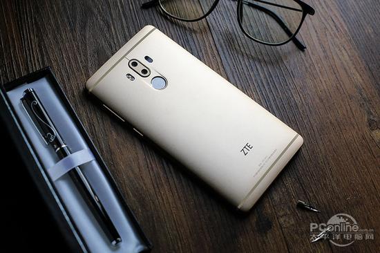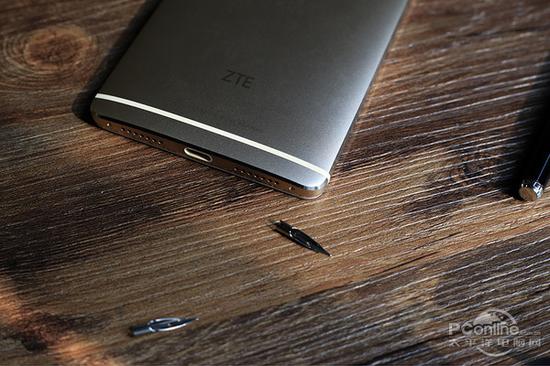 机身边缘采用了CNC高光倒角切割工艺,金属质感强烈。机身左侧卡槽与右侧按键做工良好,和背壳的结合处严丝合缝,体现出中兴精致的做工。