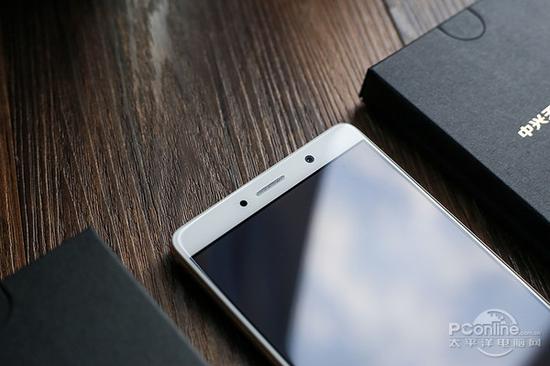 中兴天机7 MAX正面顶部可以看到同一水平线上的距离传感器、听筒和1300万像素的前置摄像头。上下面板与屏幕边框、黑边的大小控制十分理想。
