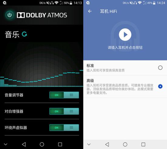 软件方面,内置的杜比全景声和耳机Hi-Fi调节功能使得音质更具有立体感,开启高级Hi-Fi后对耳机的推力明显增强,音场更加开阔,乐器的解析力也更加出色,音质效果提升明显。