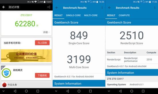| Geekbench 4(CPU/GPU) | 单核:849/多核:3199 | GPU:2510 |