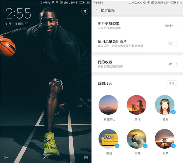 锁屏画报的图片质量非常高,支持一键切换,每次打开手机都有不同的新鲜感。