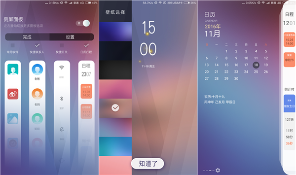 该功能用来看看天气、日历、切换一下歌曲还是挺实用的,但是用来打开常用软件还要经过锁屏密码这一环节就显得有点鸡肋了。因而,小米Note 2双曲面的应用还有待开发。