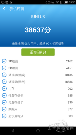 IUNI U3配备了一枚高通骁龙801四核处理器,具体型号为8974AA,并不是骁龙801四核处理器中性能最强的一款,但主频也高达2.3GHz,高通骁龙在4G/LTE及64位处理器行业中处于领先地位,与之匹配的是3GB RAM和32GB ROM,其中,3GB RAM在2000元左右的手机中比较少见。
