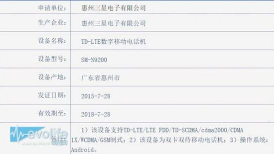 根据工信部的信息来看,三星Galaxy Note5和Galaxy S6 Edge+的数字型号分别为SM-N9200和SM-G9280,两者在7月28日已经双双取得了入网许可证,值得关注的是,这两款产品和此前的 Galaxy S6系列一样,都支持全网通功能,并提供了双卡双待,全面兼容TD-LTE/LTE FDD/TD-SCDMA/cdma2000/CDMA1X/WCDMA/GSM制式网络。
