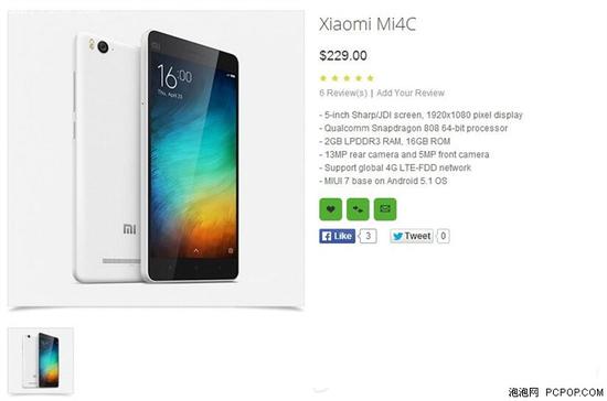 国外热卖的小米4i改名小米4c终于快要回到国行的怀抱,而且处理器也从骁龙615更换为骁龙808,有着更强劲的性能,以高性价比著称的小米这款4c的售价仍作为悬念备受关注。不过,向来以曝光手机售价而出名的国外购物网站Oppomart曝出了小米4c的售价,229美元,约合人民币1455元。
