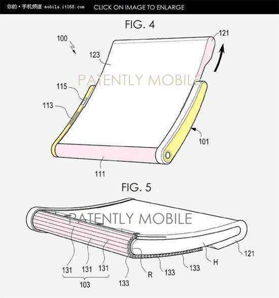 ▲三星折叠手机专利图报道称这款可折叠智能手机配备了OLED显示屏,这种屏幕折叠后仅为钱包的一半大小,为5英寸,展开后则可以达到7英寸,因此其便携性很高。Samsung Display负责研发这种可折叠OLED屏,当前已经完成了原型的开发阶段。Samsung Display高管透露,在与合作伙伴协商妥当之后他们将开始进行量产,最终走向市场。