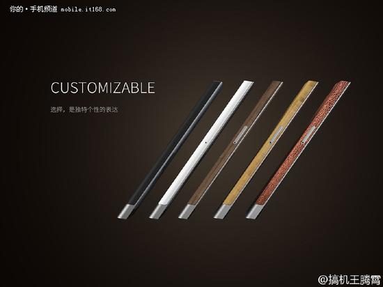 从网友曝光的图片来看,努比亚BEZEL-LESS这款概念机仅在机身正面底部留出了一块下巴,和屏幕仍然是一体的,但并没看到nubia标志性的小红点Home键。机身背面则是摄像头、指纹识别模块、nubia Logo以及扬声器,摄像头依旧有标志性的红圈,另外,机身后壳可以任意更换,除了常见的黑白以外,还拥有金属、木质、皮革等多种材质可选择。