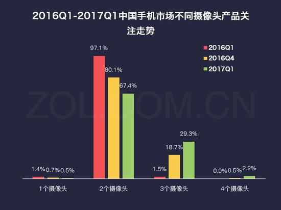 2016Q1-2017Q1中国手机市场不同摄像头产品关注走势