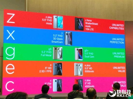 首先是旗舰Moto Z系列,包括5.5寸1080P显示屏的Moto Z Play二代,依然延续模块化设计,正面指纹。