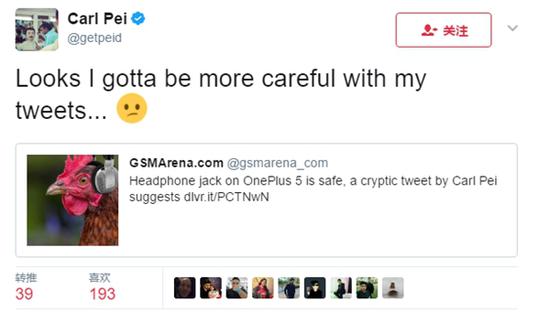 不过,对此,一加联合CEO Carl Pei已经给出了答案,按照他的推特来分析,一加5保留了3.5mm耳机孔,与上代的区别在于,位置做了调整,意思应该是换到了顶部(一加3在底部)。