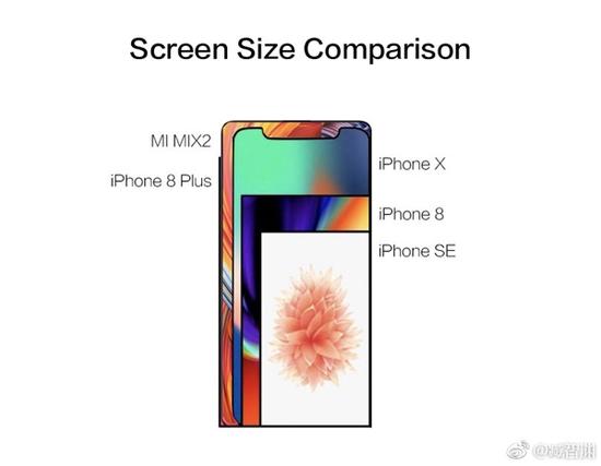 今天,小米手机产品市场总监臧智渊在微博分享了一张图显示,裸屏的显示区域方面,小米MIX2比iPhone任何一款产品都有着明显优势。