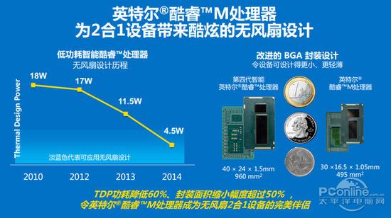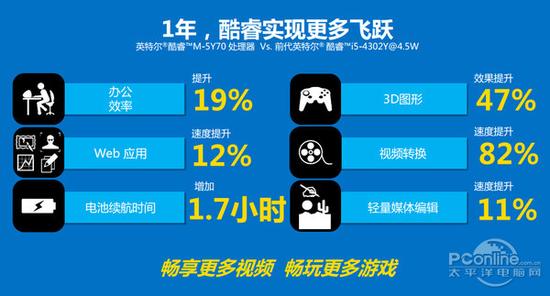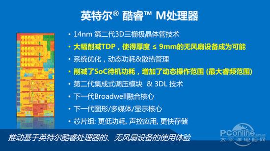 性能并非Core M的特点,它的优势是彻底改变笔记本不能没有风扇的历史;然而从外在来看,Core M令笔记本可以设计的更薄更轻,携带更加的方便。