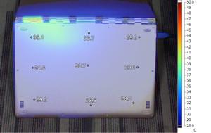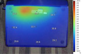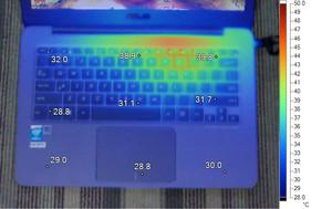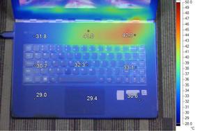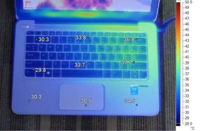 我们使用Furmark拷机软件对所有产品进行测试,Furmark会将整机的两大发热部件CPU与显卡全运转起来,运行30分钟后温度会上到一个极限 的高度,为了让大家可以更加直观的看出每台机子在运行时的散热情况,我们还使用了FLUKE红外热成像仪,分别观察各个位置的温度升温情况。(温度跨幅 28°C-50°C:低于温度下限会显示黑色;超过温度上限会显示白色)。