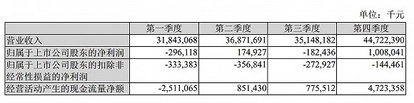 如下表所示,苏宁去年第四季度收入约450亿元,前三季度收入均低于370亿元;第四季度归属股东的净利润约为10亿元,前三季度均不超过2亿元(一季度与三季度为亏损)。此外,剔除非经常性损益后的亏损收窄,经营活动产生的现金流则大幅增加。