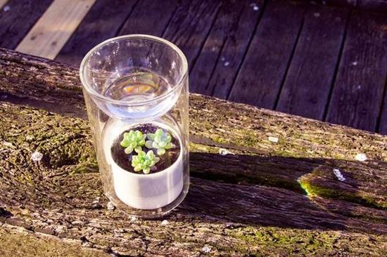 你可能钟情于在屋里种植一些小盆栽,但又时常忘记了淋水?设计师Jonathan设计的这款Livesglass 温室沙漏式花盆就适合你。